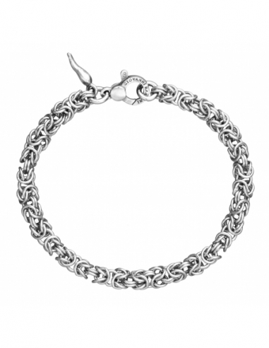 Una catena iconica, che ha segnato la storia della gioielleria, si trasforma in un raffinato bracciale in argento. E' la maglia bizantina in versione mini, lavorata artigianalmente. Con il suo particolarissimo ed elegante intreccio, rappresenta da sempre uno dei best seller della Maison Giovanni Raspini. Un gioiello versatile che si presta ad un indosso sia maschile che femminile.