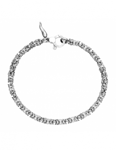 Una classica catena che ha fatto la storia della gioielleria, da sempre best seller del brand, diventa prezioso bracciale in argento. E' la maglia bizantina in versione mini mini, lavorata artigianalmente, col suo particolarissimo ed elegante intreccio. Un gioiello versatile che si presta ad un indosso sia maschile che femminile.