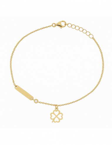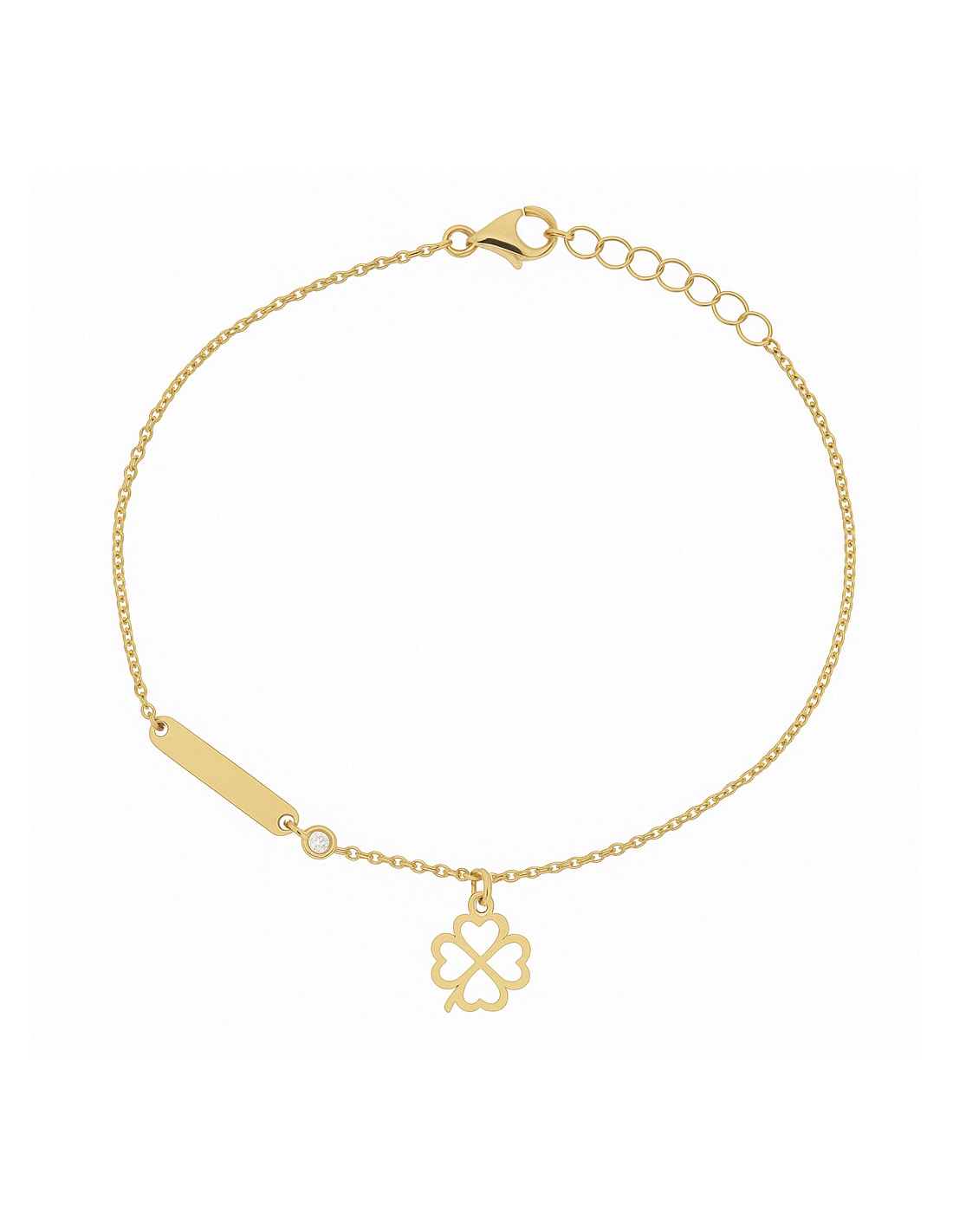 BRACCIALE DEDIE PENDENTE QUADRIFOFLIO TRAFORATO, ORO GIALLO DIAMANTE