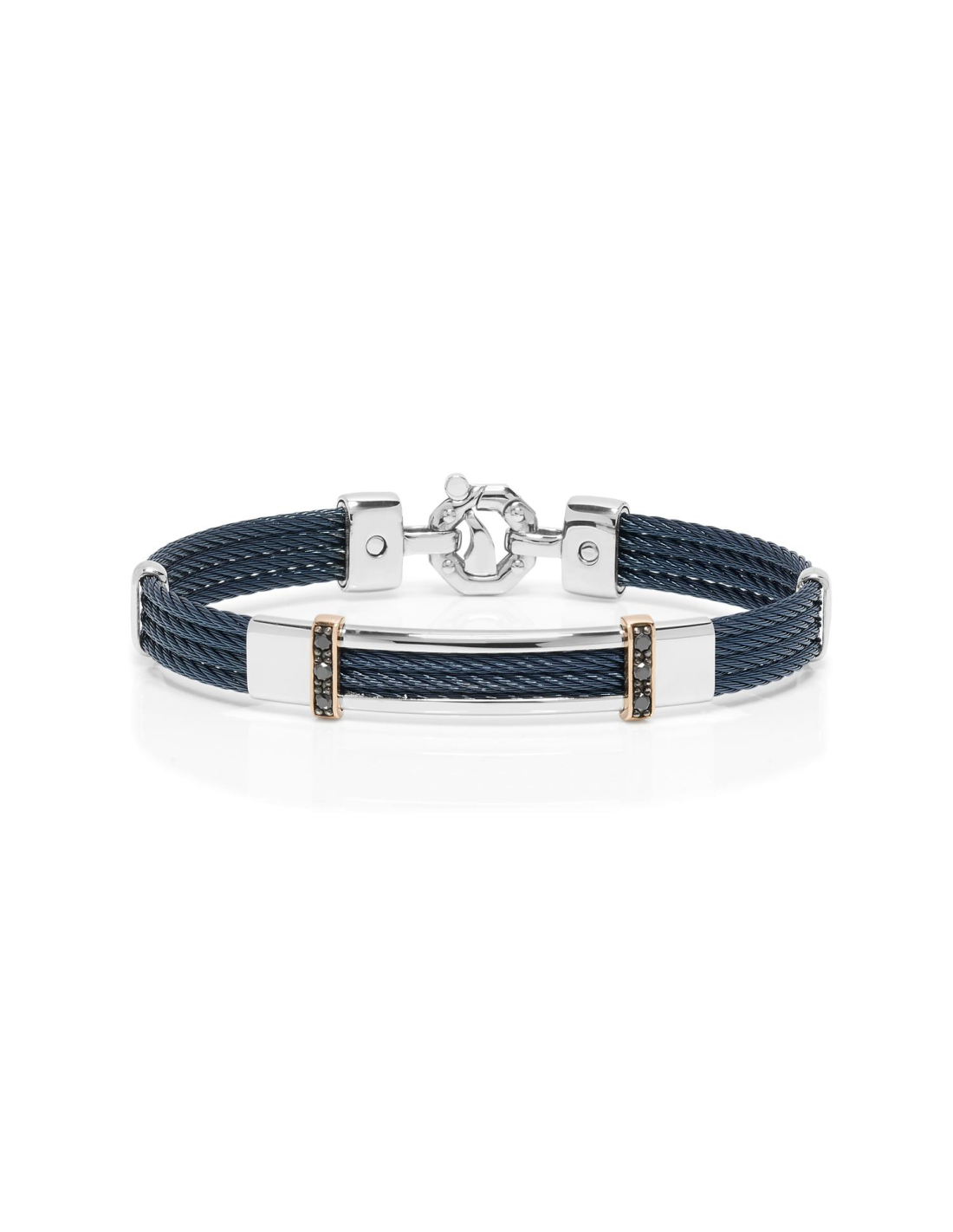 Bracciale in acciao PVD blu con inserti in oro rosa e diamanti neri 0,18ct.