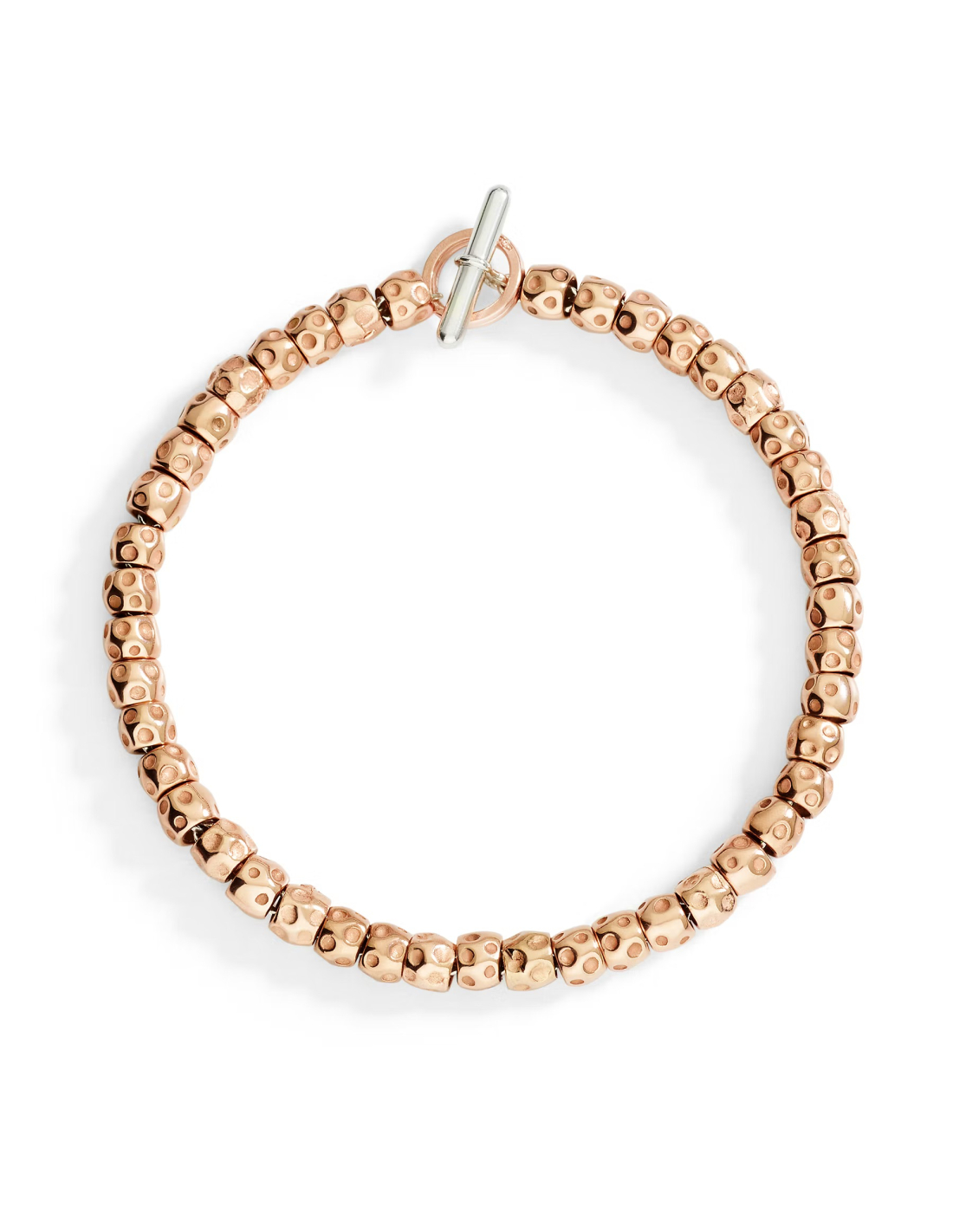 Bracciale Granelli in oro rosa 9K con catena e t-bar in argento 925 e anello brisè in oro rosa 9K. Ago in argento 925 incluso.
