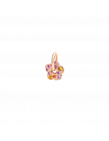 Ciondolo fiore in oro rosa 9K con zaffiri rosa (ct 0.24) e zaffiri arancio trattati (ct 0.22).