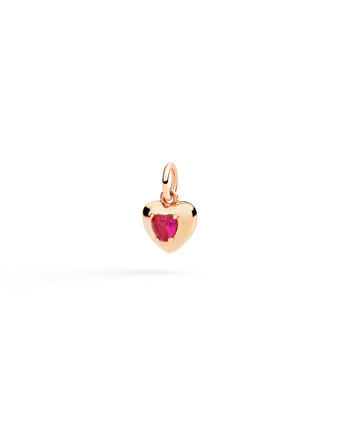 CIONDOLO DODO CUORE, ORO ROSA RUBINO SINTETICO