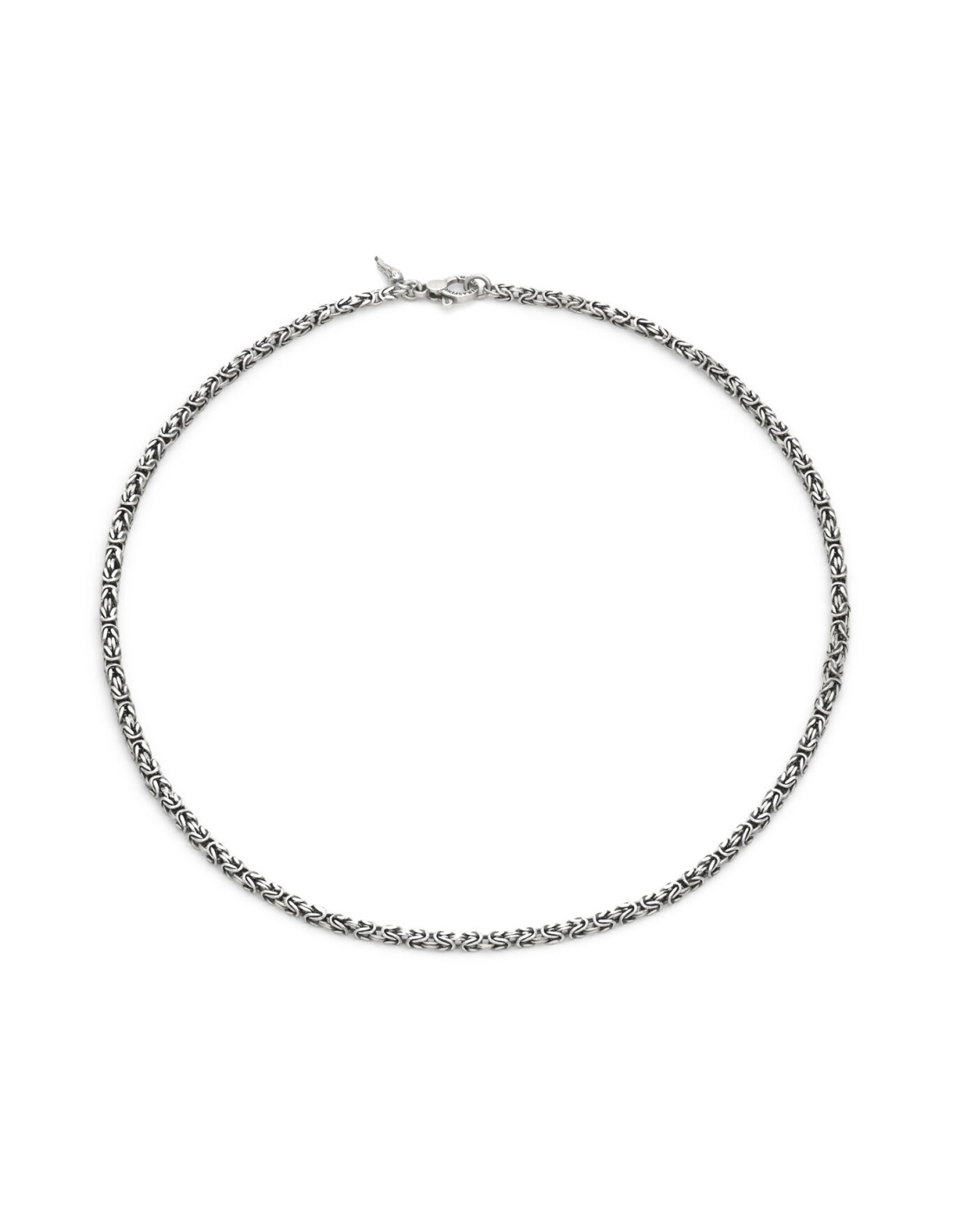 Una nuova versione di una delle catene più amate di sempre. La collana Maglia Bizantina Quadra Mini in argento si indossa come gioiello unico oppure abbinato ad altri gioielli.