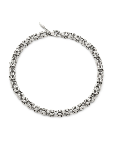 Un capolavoro di maestria artigianale firmato Giovanni Raspini, la collana Bizantina Luce reinterpreta l'iconica catena bizantina conferendole luminosità e matericità. La particolare sfaccettatura delle maglie, realizzata a mano, crea suggestivi giochi di luce e riflessi, donando all’intero gioiello una brillantezza unica.
