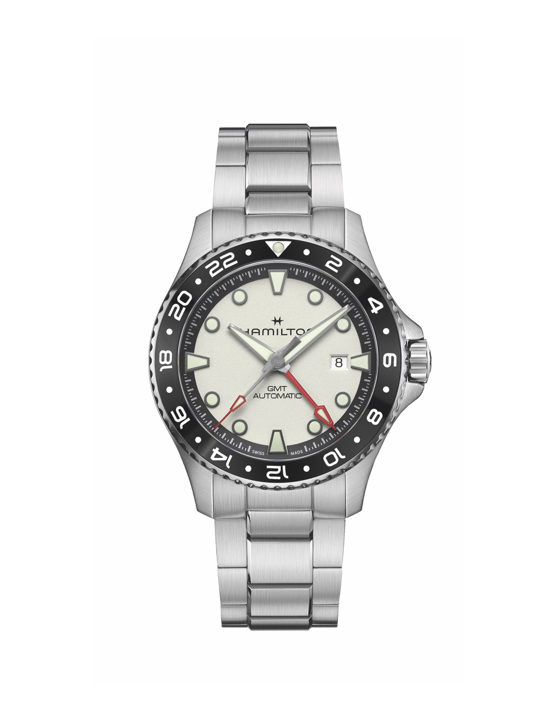 Progettato per i marinai moderni e gli inarrestabili lupi di mare, il Khaki Navy GMT Automatic è l’orologio da viaggio per eccellenza, grazie alla precisione del cronometraggio di più fusi orari. Dotato di una cassa in acciaio inossidabile con un bracciale spazzolato, il quadrante bianco con finitura perlage è impreziosito da indici in Super-LumiNova® verde chiaro, mentre la lancetta rossa indica la funzione GMT e facilita la lettura del secondo fuso orario. Caratterizzato da un’impermeabilità fino a 30 bar, una corona a vite e una riserva di carica fino a 80 ore, il Khaki Navy GMT Automatic ti consentirà di esplorare nuovi orizzonti con sicurezza e stile. Scopri la nostra collezione Khaki Navy, creata per le avventure subacquee.